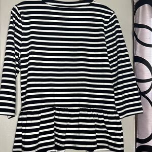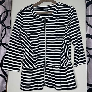 Onque Casuals Women’s Size Medium Black White Stripe Peplum Zip Front Sweater