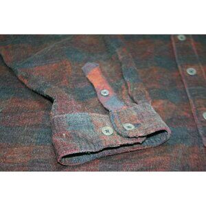 Elevate your casual wardrobe with this Carbon2Cobalt men’s XXL plaid shirt, designed in California. Featuring a unique red and blue plaid pattern with a soft velvet corduroy-like texture, this shirt combines comfort with modern rugged style.