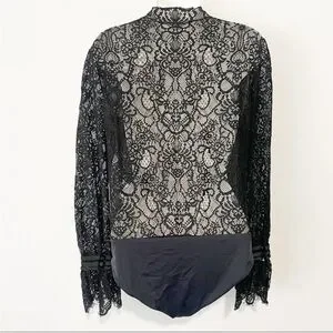 Jonathan Simkhai black lace long sleeve bodysuit button front size medium