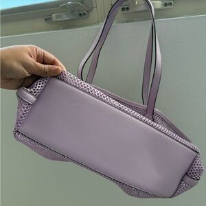 Chic and roomy tote with a mesh design. Perfect for daily essentials. Eye-catching lilac shade.