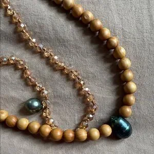 Elegant Wooden and Beaded Necklace with Tahitian pearls