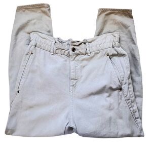 Zara High Rise Barrel Leg with Elastic Paper Bag Waist Cropped Jeans Ecru Color (last photo shows true color) Denim have 4 Pockets BOHO Bohemian Cottage Cottagecore Folk Shabby Chic Folklore Festival Casual