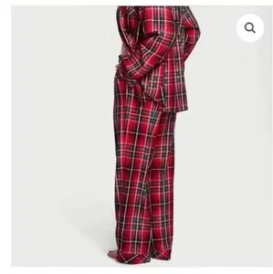 VS sleep dreamer shimmer pajama set. Two-piece set featuring a long sleeve button-down top and matching pants. It's part of the "Sleep Dreamer" collection and is distinguished by a subtle shimmering thread woven into the fabric.