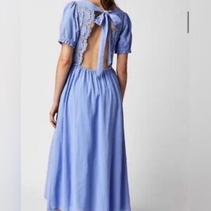 Free People Lavender periwinkle blue Lace Midi Dress all you need is lace dress