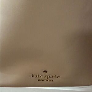 Chic Kate Spade crossbody in beige with black strap. Stylish and versatile for any outfit.