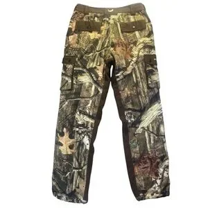 Stay ready for the outdoors with these Kings River camouflage hunting pants in a Men’s M.Features include multiple cargo pockets with snap closures, an elastic waistband, and reinforced knee panels in a durable brown contrast fabric. Great for hunting, hiking, or workwear in rugged conditions. Classic RealTree-style camo print for optimal concealment.