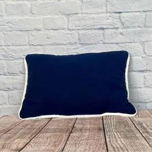Navy blue throw pillow with hand-embroidered words “Today I Choose Happy". White braided cord trim. Measures 18" L x 13" W x 3 "H. Excellent used condition with no visible imperfections.
