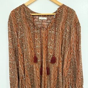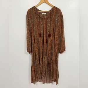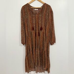 Doen Normandy Dress Earth Mandevilla Vine Floral Paisley L