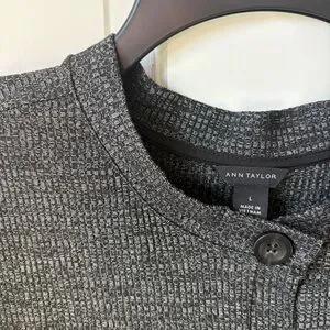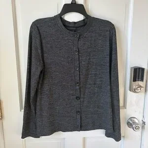 ANN TAYLOR Silky Charcoal Heather Gray Button-Down Cardigan Top Size L