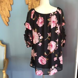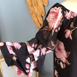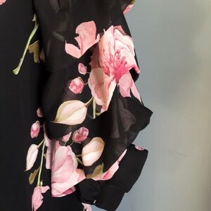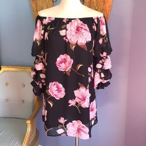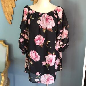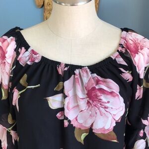IJOAH black & pink floral chiffon mesh pullover 3/4 sleeves tunic/mini dress M