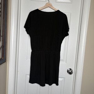 Stylish black V-neck romper with short sleeves. Perfect for casual outings. Size Large.