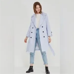 Banana Republic Periwinkle Blue Trench Coat With Black Buttons in a Size Extra Small. Matching Dress in a separate Listing.