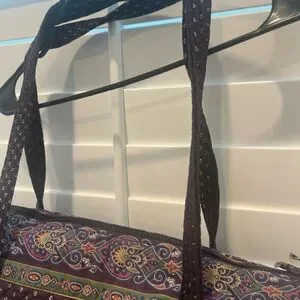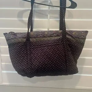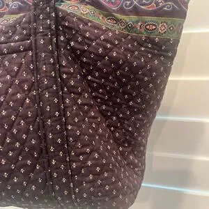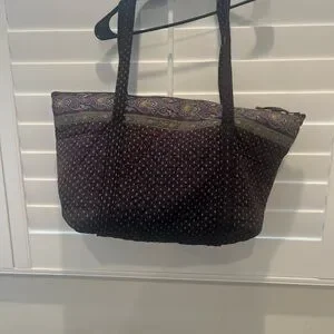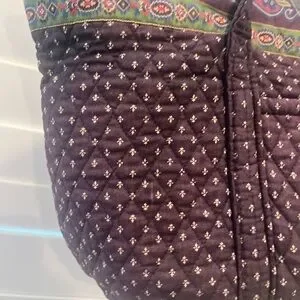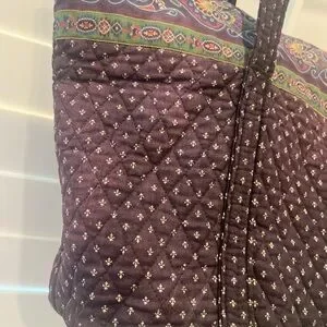 This Vera Bradley travel bag in a rich purple hue combines style and functionality with its quilted design. Perfect for travel, it offers ample space for all your essentials while maintaining a chic appearance. The bag's vibrant color and elegant texture make it a standout accessory for any journey.