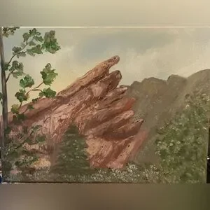 Enhance your space with this serene mountain landscape canvas art. Featuring calming green and earthy brown tones, it brings a touch of nature indoors.