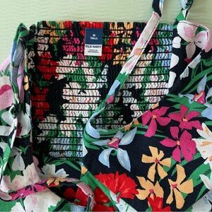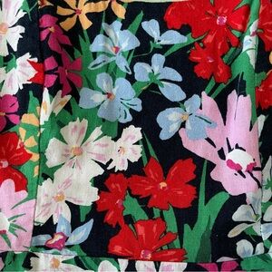 Vibrant color floral dress. Pullover with elastic smocking in the back for a great fit. A-line skirt, adjustable straps and side seam pockets. Top is lined.