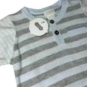 NWT - Mudpie Knit Blue & Gray Striped One Piece - Size 9-12m