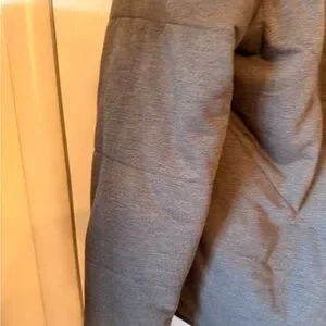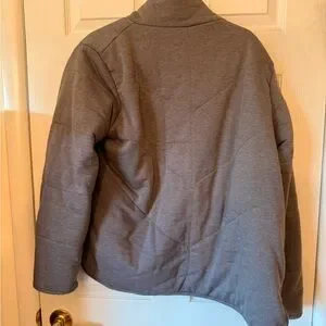 Chic charcoal puffer with a sleek zip front. Perfect for warmth and style. So very soft and cozy.