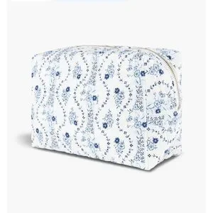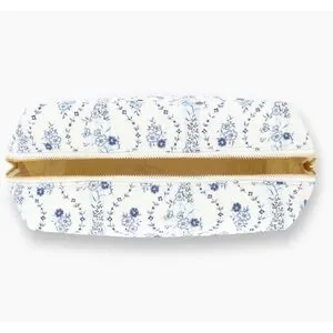 NWT Hill House The Quilted Cosmetic Bag - Blue Vine Stripe Pouch Floral White