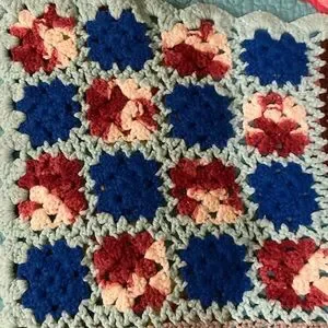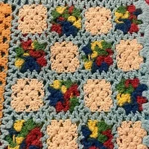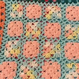 Enhance your bedroom with this colorful handmade patchwork crochet quilt. Its vibrant design adds warmth and style to any space.