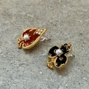 💖4/$30 NEW mismatched Elegant Gold and Black/Red Pearl Earrings