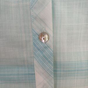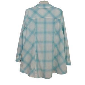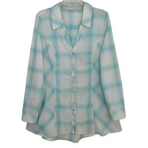 Soft Surroundings Parker Plaid Tunic Top Large Aqua Button Front Pockets Spring