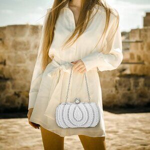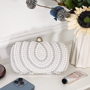 Women's Pearl Beaded Evening Clutches Bags for Wedding Luxury Evening Purse Hand