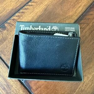 Elegant Timberland card holder in dark leather. Ideal for keeping cards organized. Durable and stylish design.