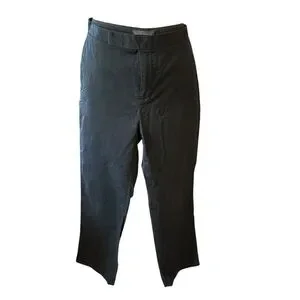 Casual navy cotton and nylon pants. Front and back pockets. Snap and zip front closure.