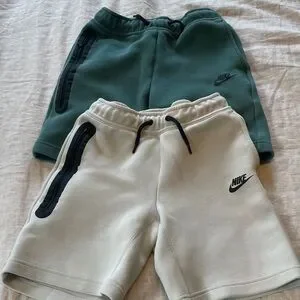 Lot of two Youth Medium Nike Tech shorts. Mild speckled staining on back of white shorts (see photo)