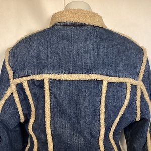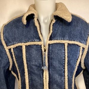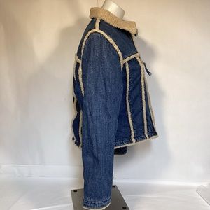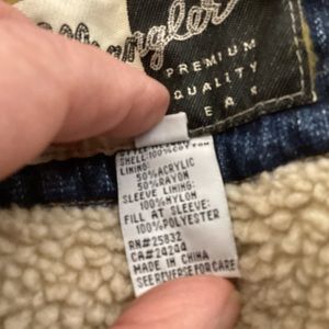 Women’s Wrangler Denim jacket with Sherpa lining and seams. Has wonderful vintage look. Women’s size XL Please See Measurements may run small