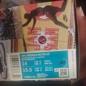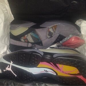 Stylish Jordan athletic shoes with a multicolor design. Features a mix of gray, black, and vibrant patterns. Perfect for sports and casual wear. Jordan Retro 8 N7 size 14