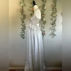 Bridal bride wedding satin silk off white cream gray Grecian Greek goddess ethereal whimsical couture runway garden Formal Ballgown Evening Dress bridesmaid spring winter June summer silk satin