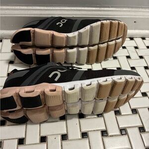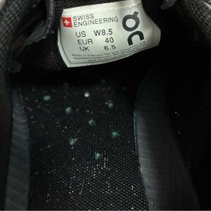 Charcoal and black On Running sneakers. Modern and comfortable design.