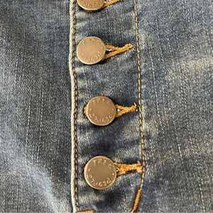 Fee People Baby Bell Button Fly FlareCrop Frayed Spilt Hem Jeans boho