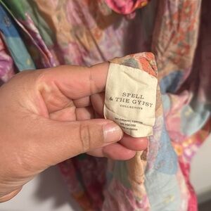 Charming preloved SPELL kimono with floral patchwork pattern. Ideal for a vibrant look. Gently worn, some normal signs of wear. Delicate fabric.