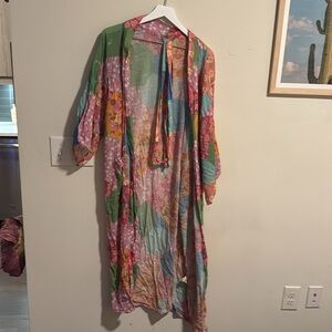 Spell Floral Multicolor Freda Patchwork Kimono Robe in Lolly