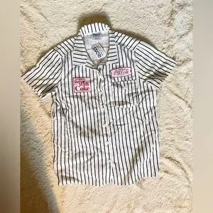 Coca Cola Black and White Striped Button Up