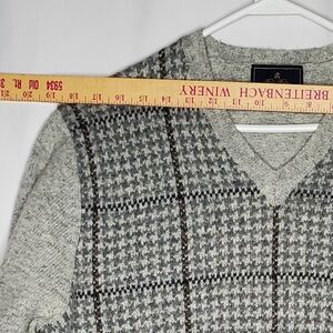 Brooks Brothers 90's Shetland Wool Sweater Mens Large Gray V-neck Houndstooth Plaid Long Sleeve