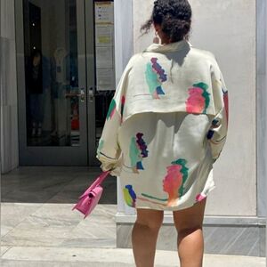 H&M STUDIO 2020 Women's MultiColor Abstract Print Button Down Sleeve Blouse- Size S