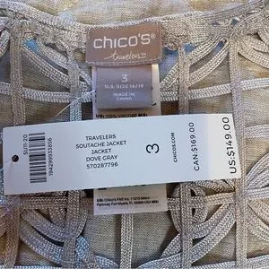 NWT Chico’s Dove Gray Travelers Soutache Jacket Size 3 (16/18)