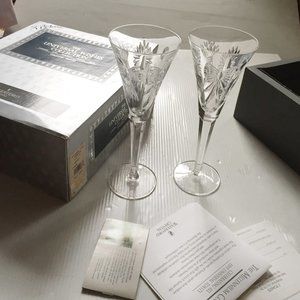 Pair / Set of 2 - Waterford "The Millennium Collection" Crystal Universal Wishes Toasting Champagne Flute Glasses
