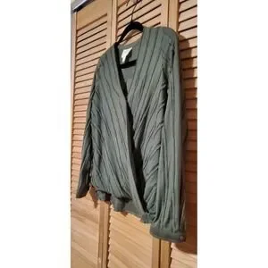 Anthropologie Maeve Audre Textured Faux Wrap Top Olive Green Small Long Sleeve