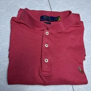 Ralph Lauren Polo Shirt Men's Large Pink Coral Custom Slim Fit Flesh Pony Soft