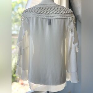 Elevate your style with this chic white blouse featuring elegant crochet detailing. Perfect for any occasion, this top adds a touch of sophistication to your wardrobe.