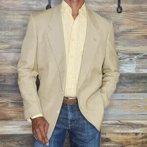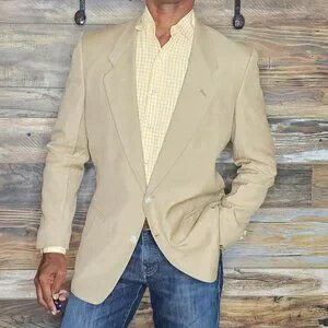 Vintage Pierre Cardin Wool Linen Beige Blazer Jacket 40R