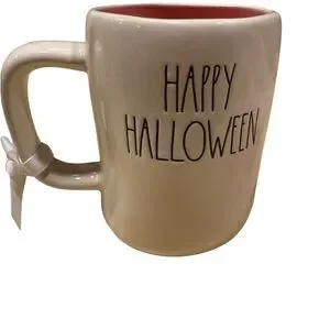 Adorable Rae Dunn mug featuring a bear in a Halloween costume. Cream exterior with a red interior.