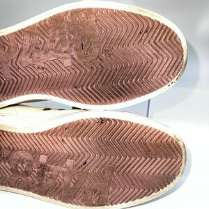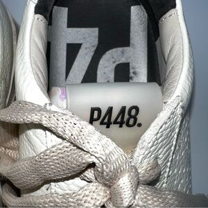 GUC P448 Leather sneakers. Elevate your casual look with P448 sneakers. White leather with beige laces and midsole. Stylish and comfortable. Some scuff and wear.