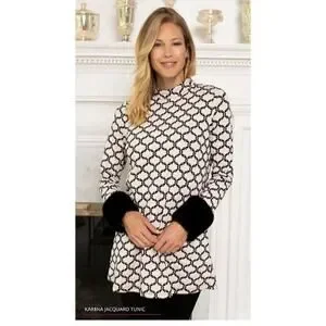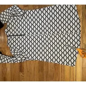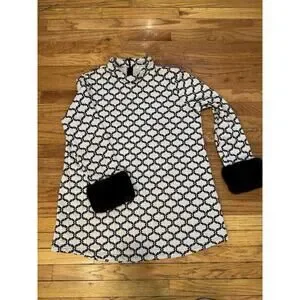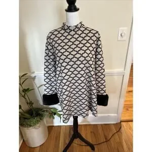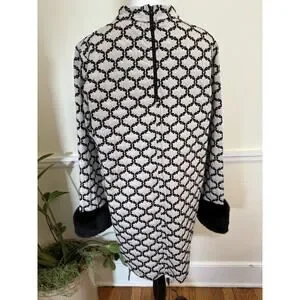 Tyler Boe Black Cream Fur Sleeves Dress Tunic Dress Stunning Mod 60s MIDI Size L
