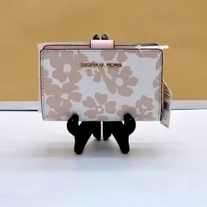 Michael Kors Jet Set Medium Floral Print Bi-Fold Wallet POWDER BLUSH NWT
