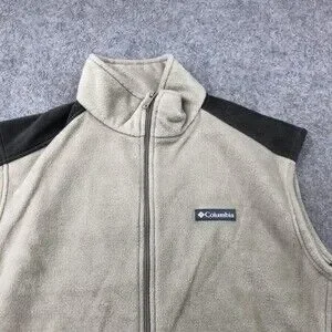 Columbia Vest Mens XL Beige Black Fleece Full Zip Sleeveless Outdoor Hiking
